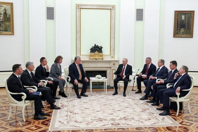 Потом в начале переговоров они обменялись несколькими фразами. Владимир Путин говорил об истории взаимоотношений, о прагматичности, о несовпадениях в международных вопросах и о том, что ему известна "взвешенная позиция" Орбана по Украине.